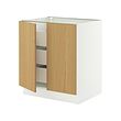 SEKTION / MAXIMERA base cabinet w 2 doors / 3 drawers, white / Sinarp oak veneer