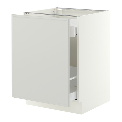 SEKTION / MAXIMERA base cabinet with pull-out storage, white / Aspudden light gray