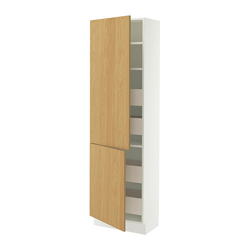 SEKTION / MAXIMERA high cb w 2 doors / shelves / 4 drawers, white / Sinarp oak veneer