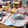 Pizza night, finger food or a garden party? The simple and classic SIMKRABBA in a calm green-grey colour has everything you need for a successful gathering. Reinforced edges make the design sturdy.