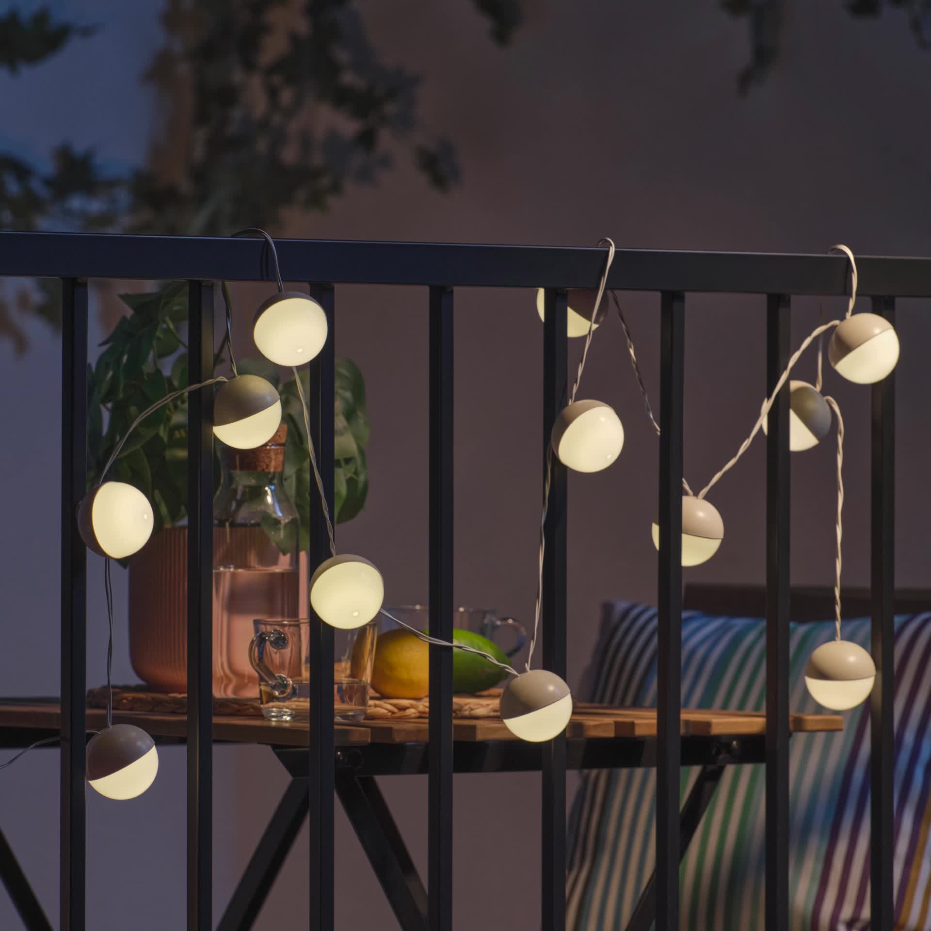 Light chains are perfect when you want to create a nice atmosphere. Easy to match with other lamps in the SOLVINDEN series in order to spread cosiness and light on the balcony, terrace or in the garden.