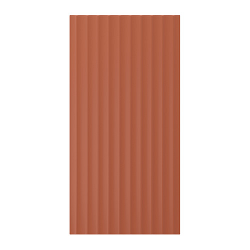 This cover panel matches TERRSJÖ fronts in red-brown, extending the design to the sides of kitchen cabinets. The wavy structure adds movement and interacts with light – creating a playful, eye-catching touch.
