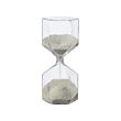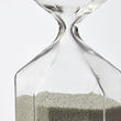 A decorative alternative to modern timekeeping. Through the clear glass, you can see the white sand run slowly down, and when you flip the hourglass the first sand grains can be heard landing on the bottom.