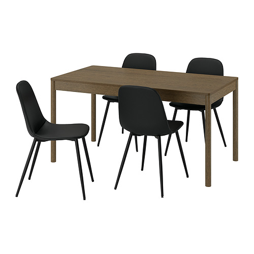 TONSTAD / NORDMANSSKÄR table and 4 chairs, brown stained oak veneer / Bomstad black black
