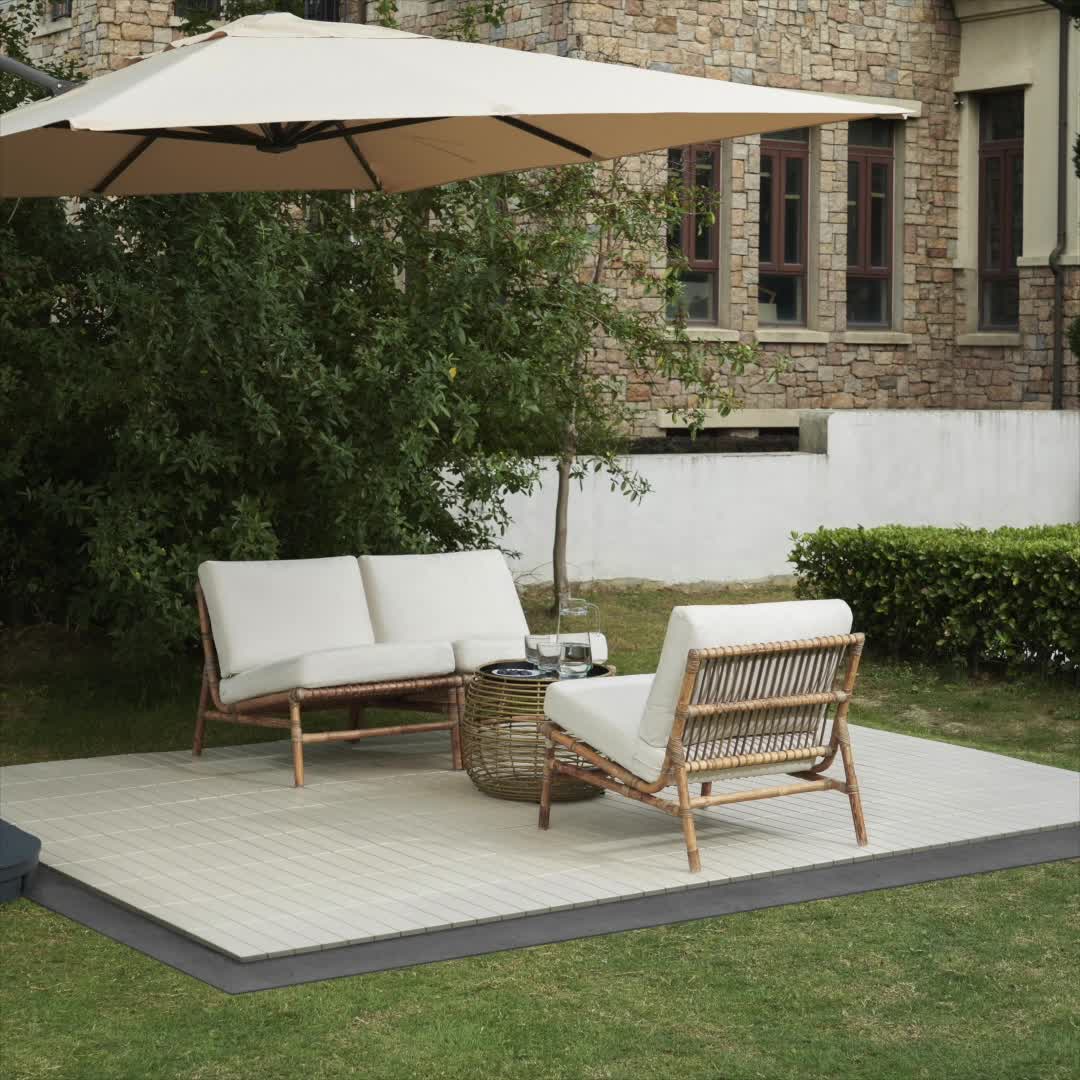 The modular section in handwoven rattan gives your outdoor space a calm and warm feel.