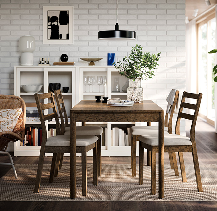 The dining tables and chairs you'll find at IKEA are designed to fit your space and your lifestyle. Extendable tables where there's always room for one more guest, comfortable and stylish chairs for long after-dinner meals, stools, folding chairs and plenty of alternatives to enjoy around the table every day.