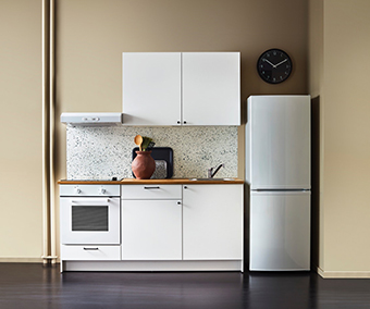 Esta solución con una estufa independiente y muebles espaciosos es ideal para una cocina de tamaño mediano. Es tan fácil y rápida de comprar como de utilizar, ya que hemos combinado todos los módulos necesarios para crear una solución completa.