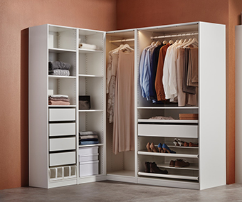 El módulo intermedio PAX se caracteriza por un diseño sencillo y atemporal que puedes personalizar fácilmente con cajas, canastas e iluminación.