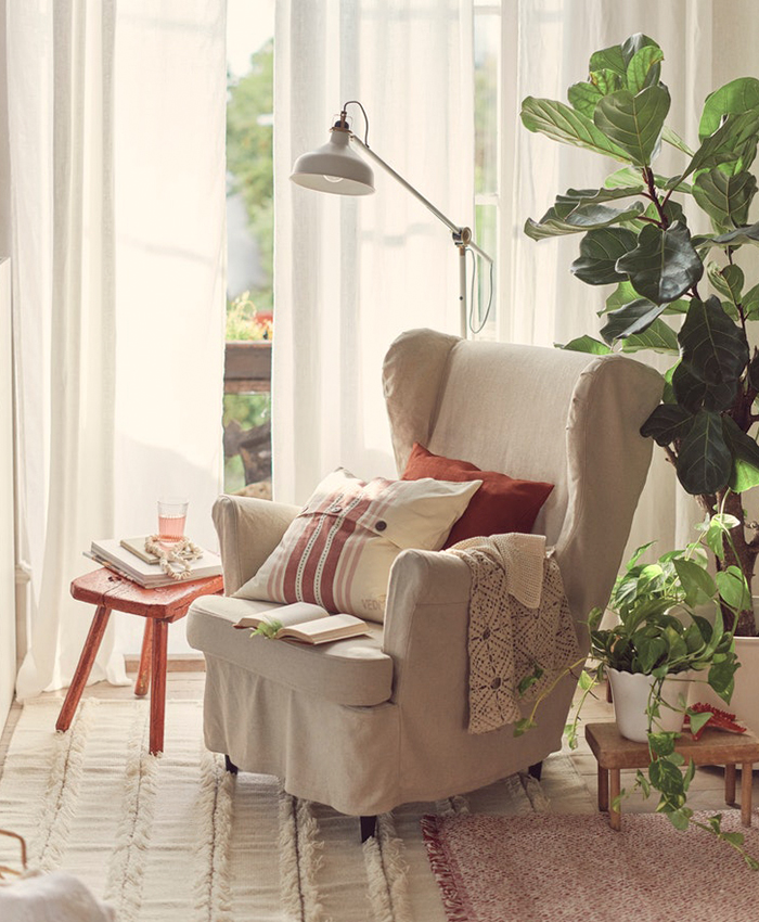 A comfortable chair, a blanket in case it gets chilly, plants everywhere and a lamp so she can keep reading when night falls. Sometimes all it takes to make her happy is to help her create that corner that makes her feel good every day. At IKEA, we specialize in creating those nooks and crannies. Spaces so beautiful and cozy that they become the most special place in the house.