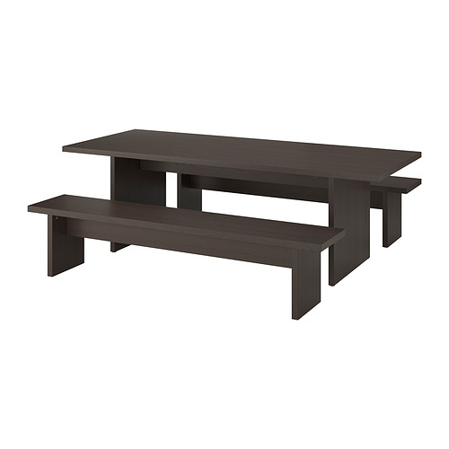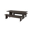 BERGSHYTTAN / BERGSHYTTAN table and 2 benches, dark brown ash veneer / tinted effect birch veneer