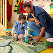 Your child can create fun figures to play with on the rug by using GREJSIMOJS toy building blocks.