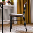 The neat metal underframe and the backrest in solid wood where the wood’s pattern shines through all gives GRÖTAN chair a traditional and clean look. And you sit comfortably on the upholstered seat.