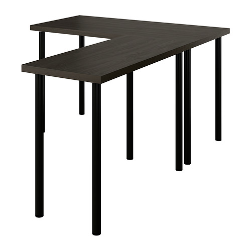 LAGKAPTEN / LINNMON L-shaped desk, black-brown / black