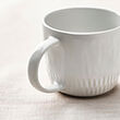 This mug is made of matte white-glazed stoneware and has an irregular finish with a crafted feel.