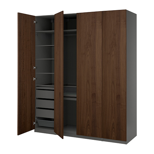 PAX / BJÖRNESKOGEN wardrobe combination, dark gray / walnut veneer