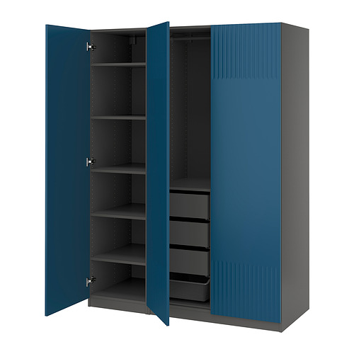 PAX / FYRUDDEN wardrobe combination, dark gray / blue