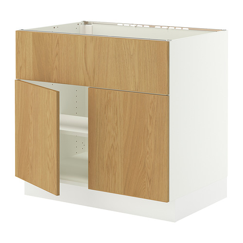 SEKTION base cab f cooktop / int extr 2 doors, white / Sinarp oak veneer