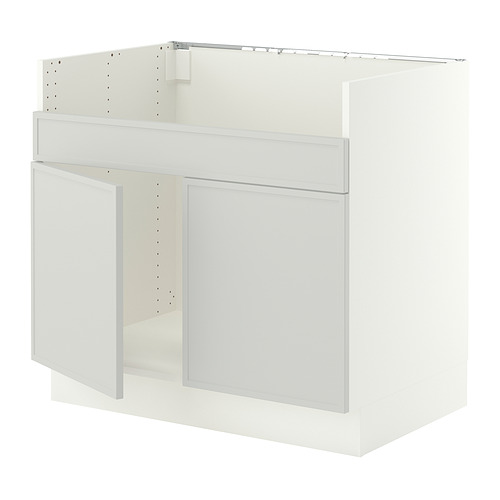 SEKTION base cab f HAVSEN double bowl sink, white / Aspudden light gray
