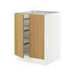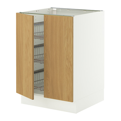 SEKTION base cabinet w wire basket / 2 doors, white / Sinarp oak veneer