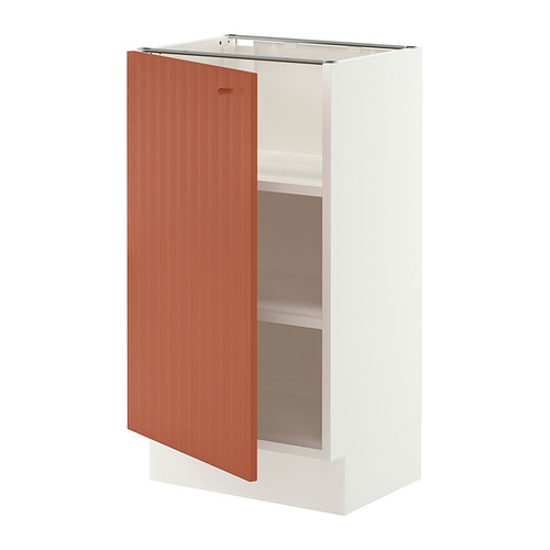 SEKTION base cabinet with shelves, white / Terrsjö red-brown wave pattern