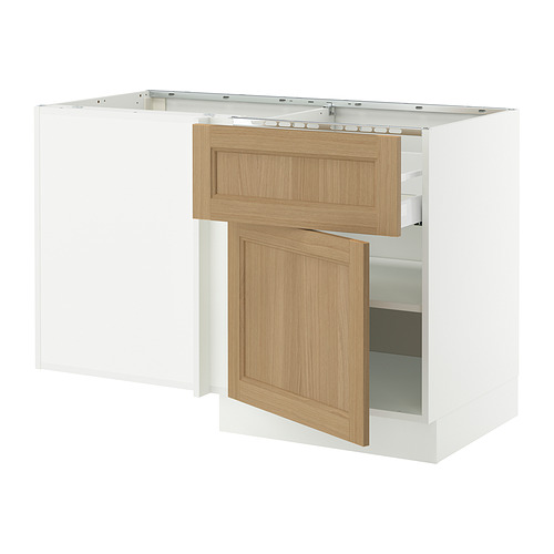 SEKTION corner base cab w drawer and shelf, white / Vedhamn oak