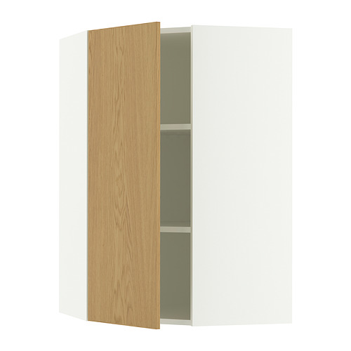 SEKTION corner wall cabinet with shelves, white / Sinarp oak veneer