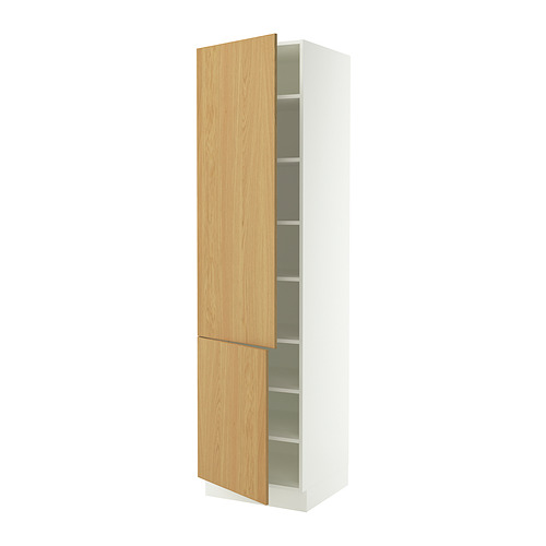 SEKTION high cabinet with shelves / 2 doors, white / Sinarp oak veneer