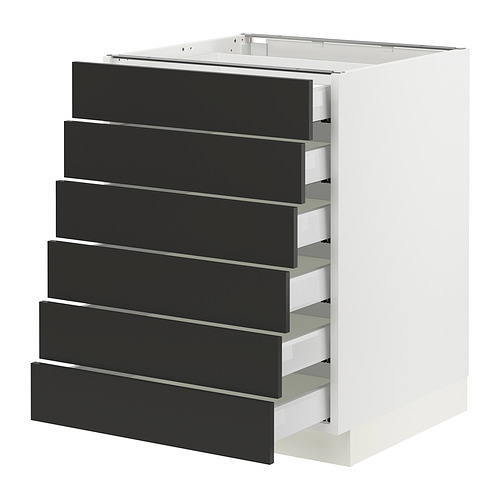 SEKTION / MAXIMERA base cabinet 6 fronts / 6 low drawers, white / Nickebo matte anthracite
