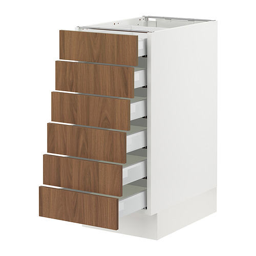 SEKTION / MAXIMERA base cabinet 6 fronts / 6 low drawers, white / Tistorp brown walnut effect