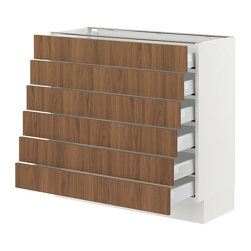 SEKTION / MAXIMERA base cabinet 6 fronts / 6 low drawers, white / Tistorp brown walnut effect