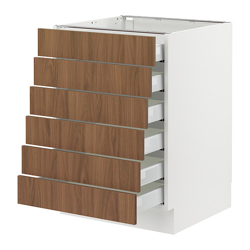 SEKTION / MAXIMERA base cabinet 6 fronts / 6 low drawers, white / Tistorp brown walnut effect