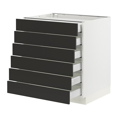 SEKTION / MAXIMERA base cabinet 6 fronts / 6 low drawers, white / Nickebo matte anthracite