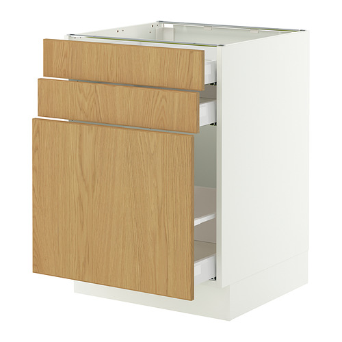 SEKTION / MAXIMERA base cabinet / p-out storage / 2 drwrs, white / Sinarp oak veneer