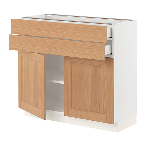 SEKTION / MAXIMERA base cabinet w 2 doors / 2 drawers, white / Vedhamn oak