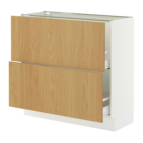 SEKTION / MAXIMERA base cabinet with 2 drawers, white / Sinarp oak veneer
