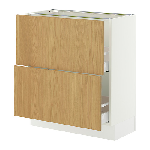 SEKTION / MAXIMERA base cabinet with 2 drawers, white / Sinarp oak veneer