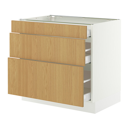 SEKTION / MAXIMERA base cabinet with 3 drawers, white / Sinarp oak veneer