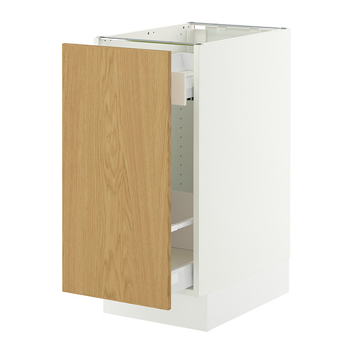 SEKTION / MAXIMERA base cabinet with pull-out storage, white / Sinarp oak veneer