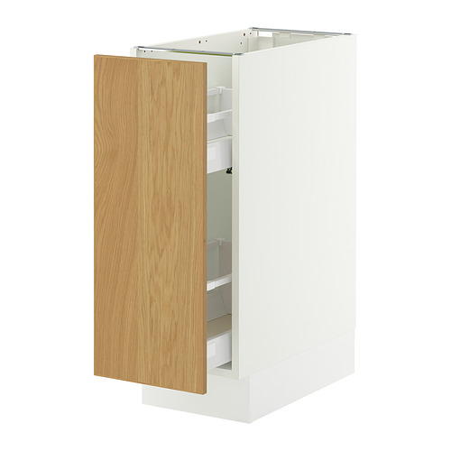 SEKTION / MAXIMERA base cabinet with pull-out storage, white / Sinarp oak veneer
