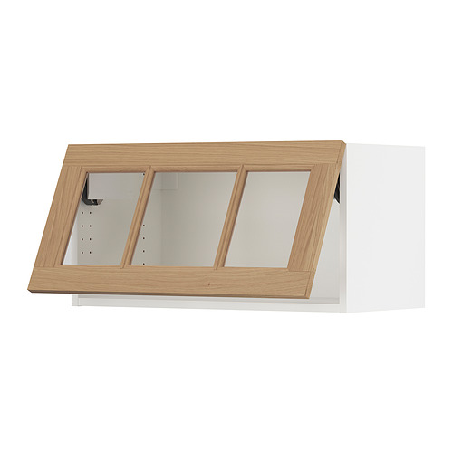 SEKTION wall cab horizontal w glass door, white / Vedhamn oak