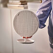 A portable speaker in a small size that fills your home with music and features a design that blends in with your decor.