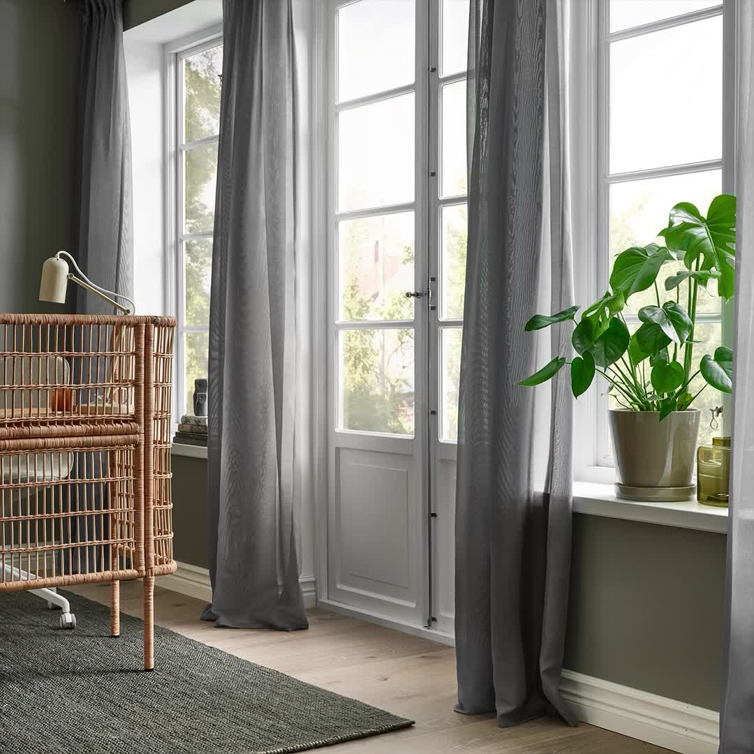 STENFRÖ sheer curtains soften the harsh rays of the sun and add fullness to your window. The grey tone pairs well with other neutral tones for an elegant look.