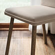 Solid wood legs with oak effect finish, accented by powder-coated metal details at the top, awarding both style and stability.